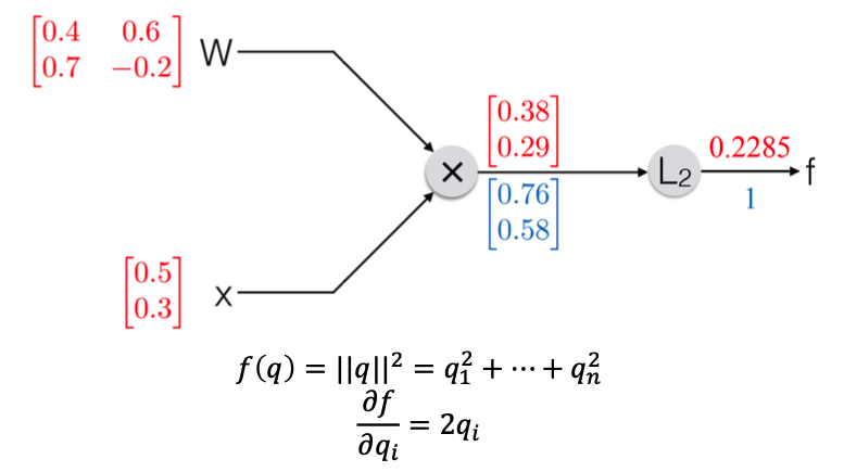 우선 L2 norm 계산값을 그대로 f 로 가져가기 때문에 L2와 f 사이의 미분값은 1이다.