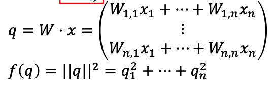 W 와 x 를 행렬 곱하고, 그 결과에 대해 L2 norm 을 구한 것이 f 이다.