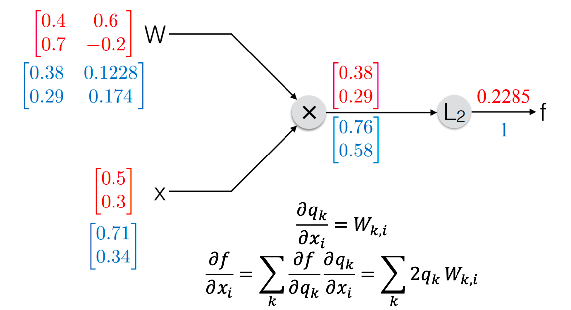여러 함수들이 합성된 뉴럴 네트워크에서 미분값을 구하기 위해, 데이터를 넣어서 전체 값을 계산하는 추론 과정과, 해당 값을 이용해서 각 레이어의 미분값을 구하는 학습 과정이 일어난다.