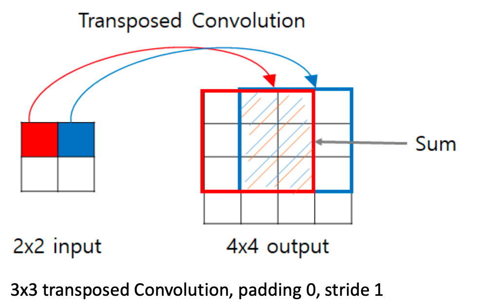 convolution은 기본적으로 크기가 줄어드는 연산인데, Transposed Convolution은 거꾸로 크기가 늘어난다.