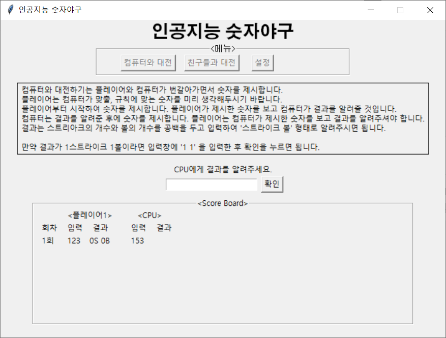 [팀프로젝트 01] 인공지능 숫자야구 만들기(4) : tkinter 입히기