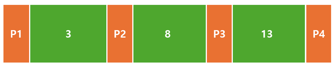 예를 들어 위와 같이 노드가 구성되어 있고, P1, P2, P3, P4 가 가리키는 서브트리 내 값을 v1, v2, v3, v4 라고 해보자.