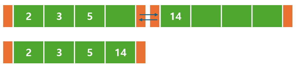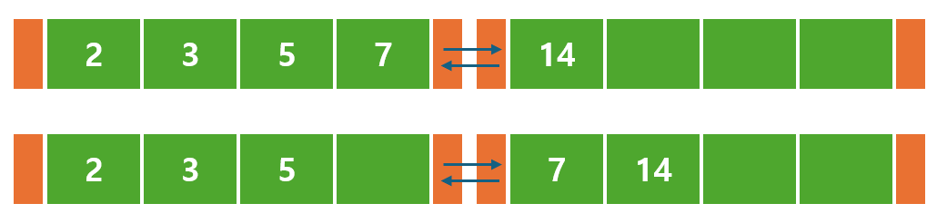 옆의 형제노드의 경우, <14, 16> 으로 공간이 남아있기 때문에, 8을 형제 노드에 삽입하고 해당 노드의 부모 키값을 변경해주면