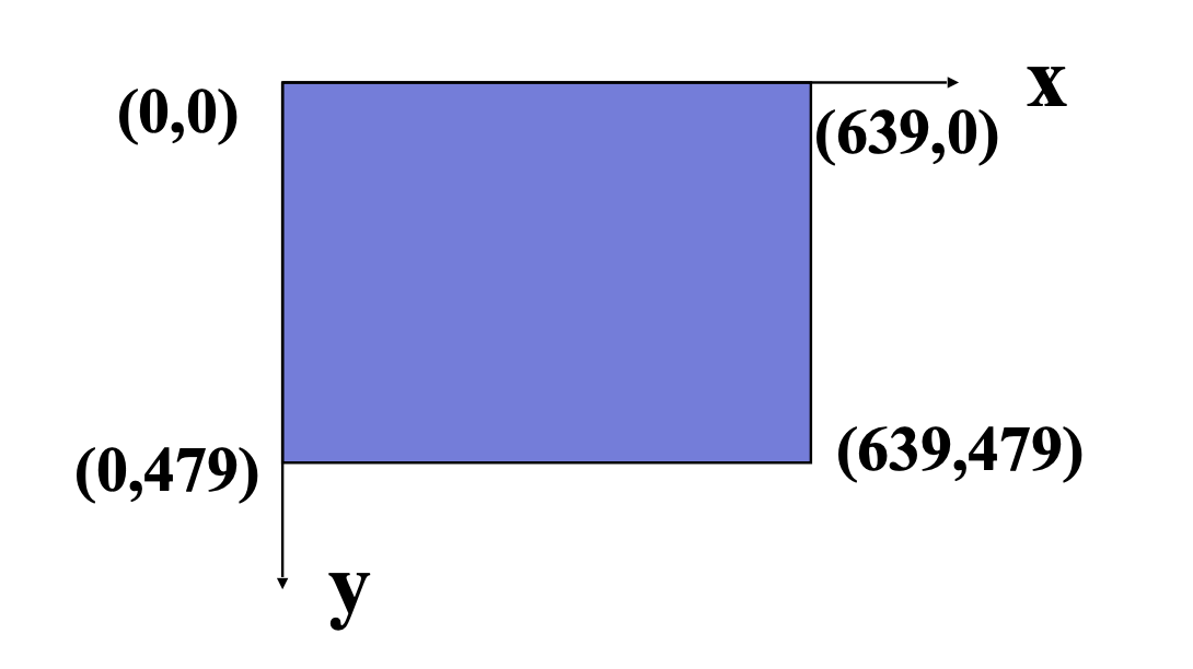 디스플레이에서는 위와 같이 y축이 아래로 뻗는 형태의 좌표계를 사용한다.