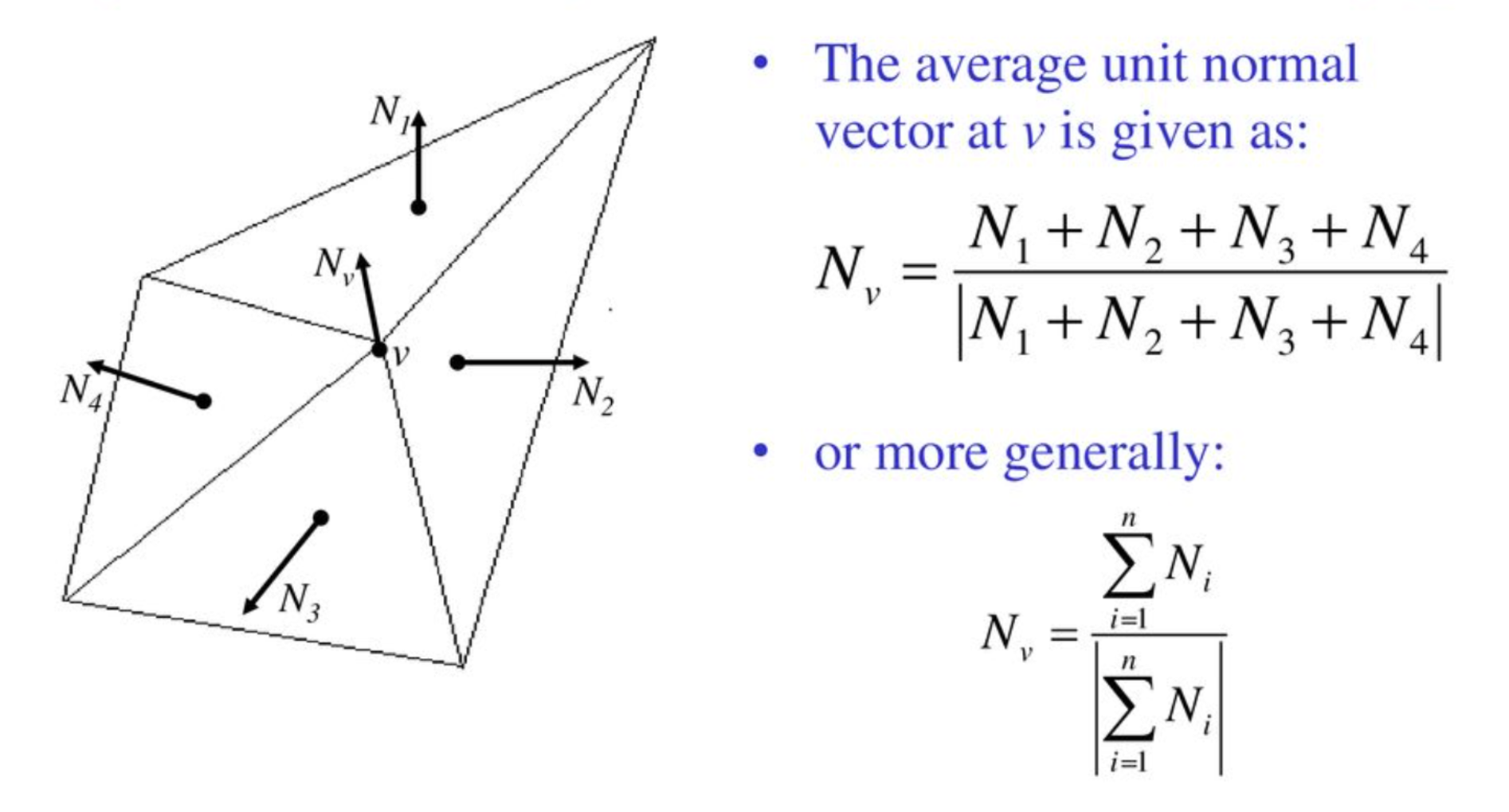 polygon mesh 의 경우 normal vector 는 실제 곡면의 normal vector 근사치를 사용한다.