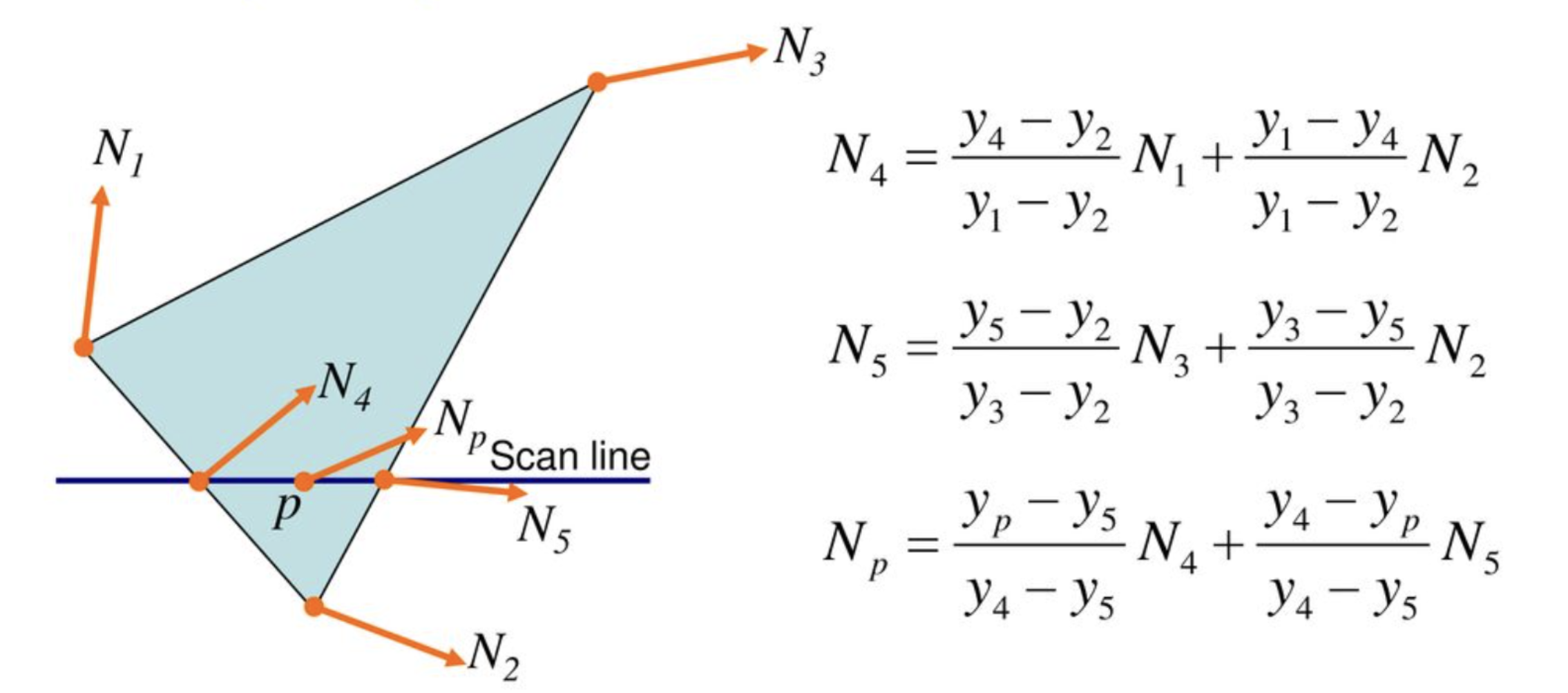 3. 각 면을 구성하는 보간된 법선벡터에 대해 illumination model 적용