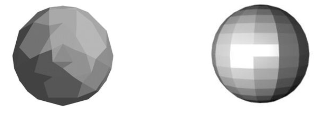 각 면을 하나의 색으로 채우기 때문에 면과 면 사이의 경계가 두드러지게 보여서 곡면이 곡면처럼 보이지 않게 되는 단점이 있다.