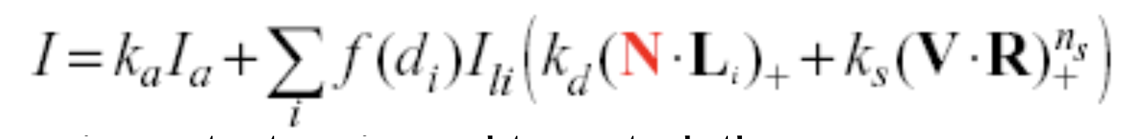 따라서 물체가 울퉁불퉁하다는 것은 그 표면의 법선벡터와 빛의 각도가 이리저리 바뀌면서 밝기가 수시로 바뀌는 것이다.