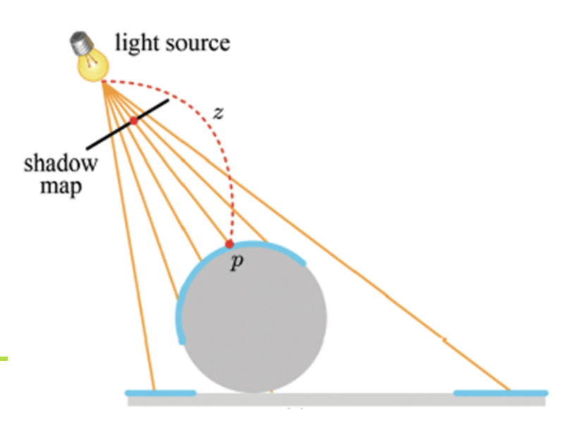 각 칸에서 빛이 얼만큼의 거리를 가서 부딪혔는지 그 거리 (z) 를 저장한 것이 셰도우 맵이다.