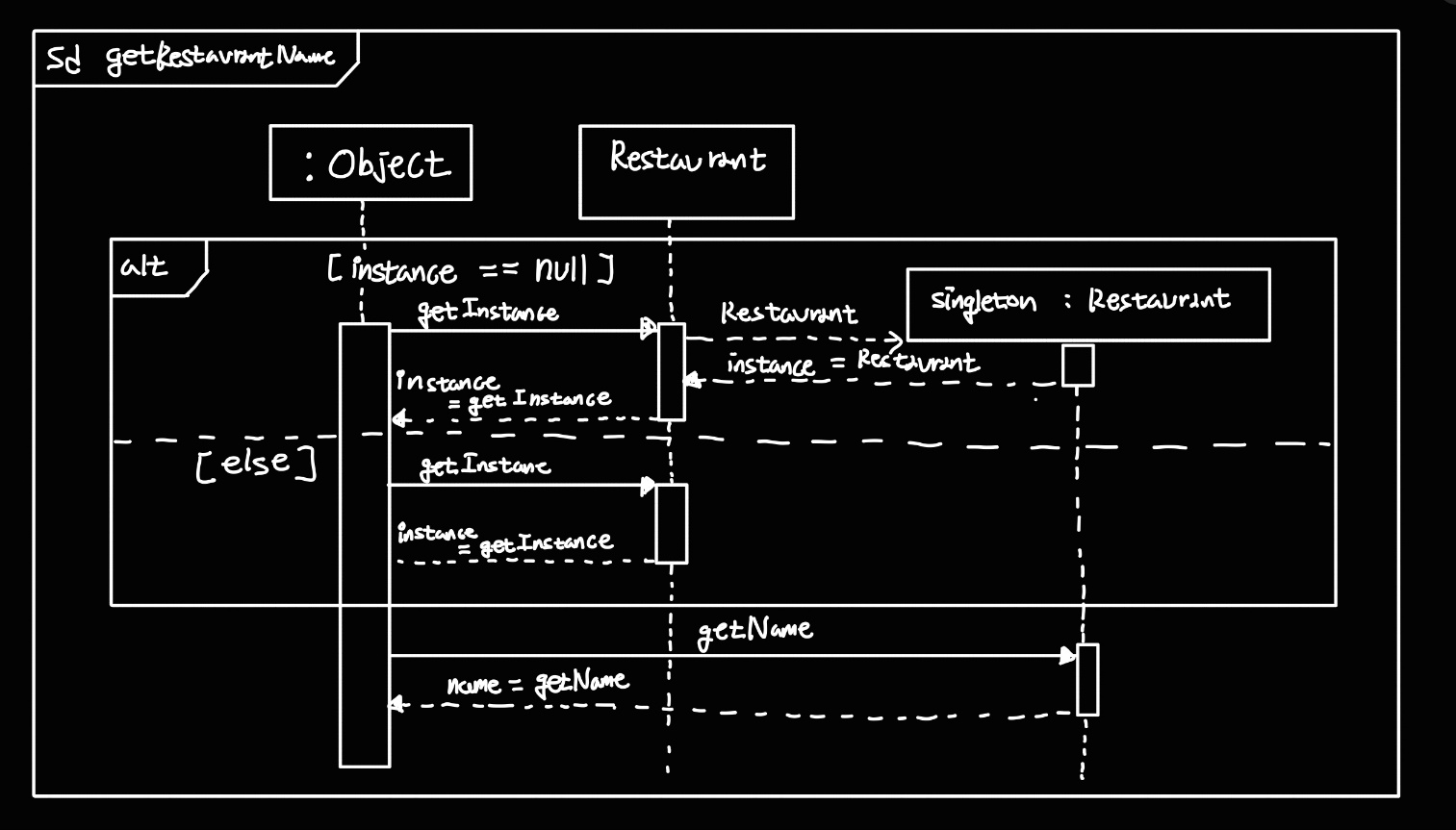 그림과 같이 식당 클래스로부터 유일하게 1개의 인스턴스만 만들어지기를 원한다고 해보자.