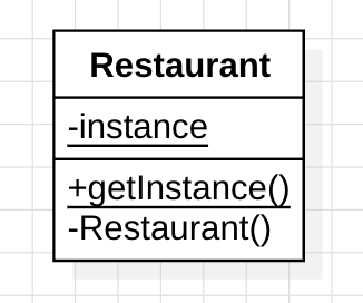 그러면 Restaurant 클래스의 인스턴스를 얻기 위해서는 반드시 getInstance() 메서드를 통해서만 인스턴스를 얻을 수 있게 된다.