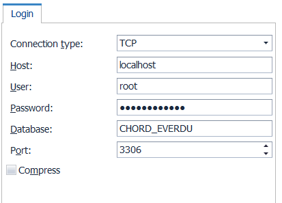 DB의 계정 정보를 넣어주고 접속할 DB이름을 입력합니다.