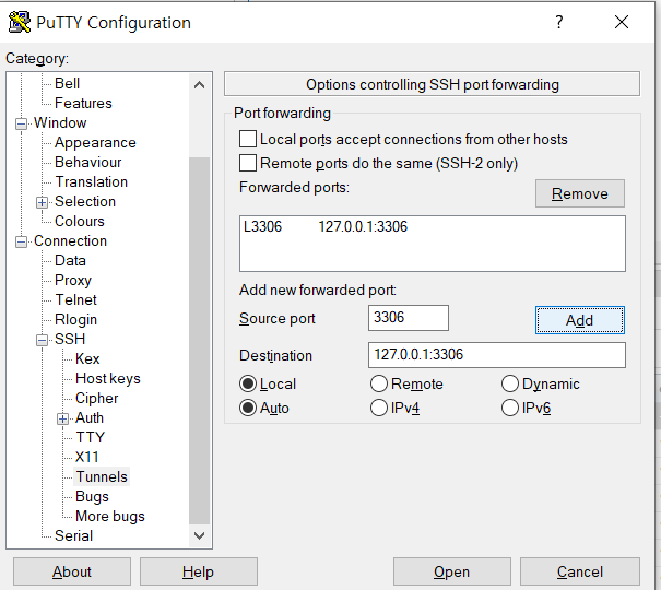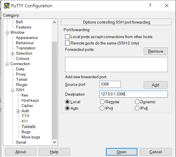 그런데 이 분은 PuTTY가 아닌 다른 방법으로 포트포워딩을 하는 방법을 소개해주셔서 100% 맞지 않았습니다.