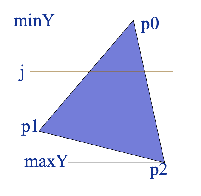 2. for each scanline y=j in [minY, maxY]