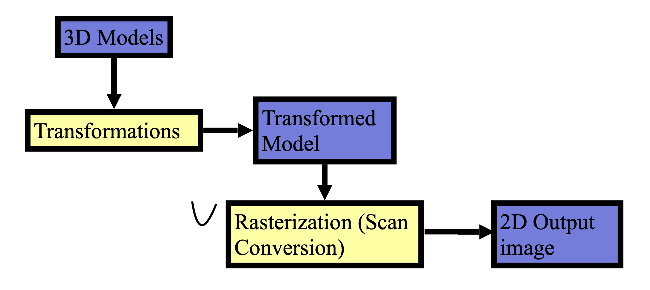 rasterization (scan conversion) 은 물체에서 이미지쪽으로 정사영해서 픽셀값을 계산하는 방식이다.