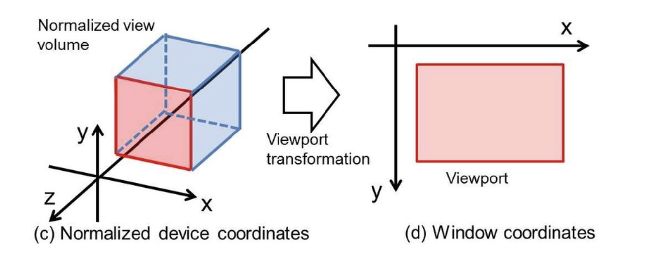 이 좌표계는 -1 ~ 1 사이의 정규화된 좌표값으로 변환된 것이기 때문에 최종적으로 모니터 크기에 맞춰 viewport 에 맞는 좌표계로 변환하면 (DC) 모든 변환이 끝난다.