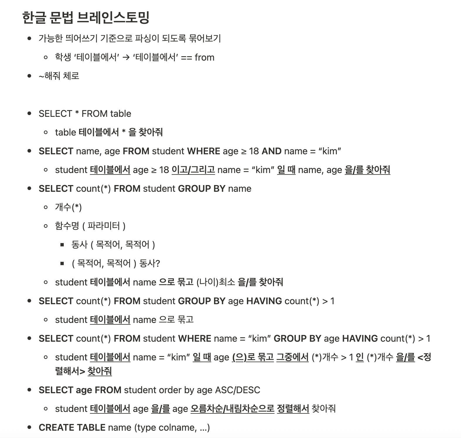 그래서 이거 구현하다가는 한글 데이터베이스가 아니라 SQLite 클론 코딩만 하다 졸프가 끝날 것 같아, 적당히 타협하고 한글 문법 포팅으로 넘어가기로 했다.