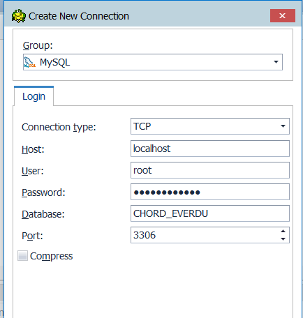 DB의 계정 정보를 넣어주고 접속할 DB이름을 입력합니다.