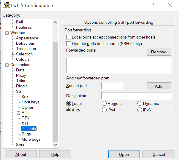 그런데 이 분은 PuTTY가 아닌 다른 방법으로 포트포워딩을 하는 방법을 소개해주셔서 100% 맞지 않았습니다.