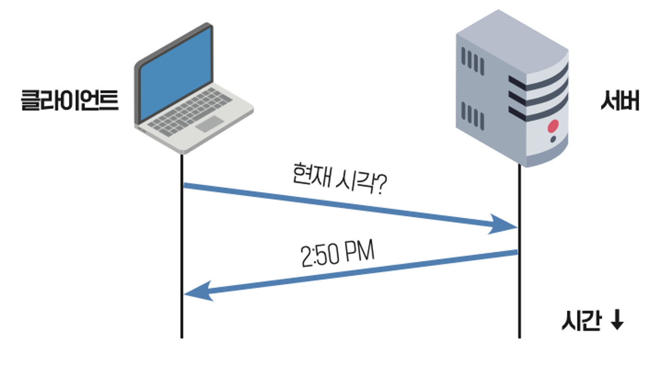 클라이언트가 서버에게 현재 시각을 물어보고 그 결과로 오후 2:50 이라는 답을 얻었다고 해보자.