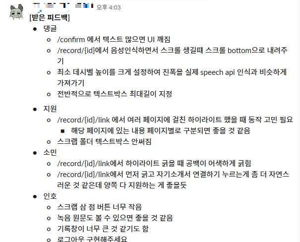 프론트 분들이 화면을 만지셔서 그런지 확실히 버그를 많이 찾아주셨다.