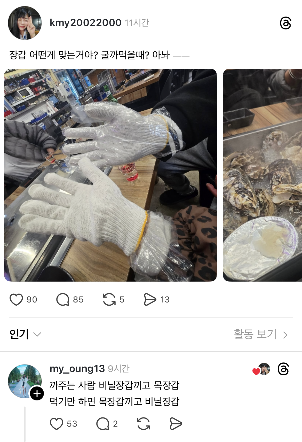 나는 당연히 목장갑 위에 비닐장갑인줄 알았는데