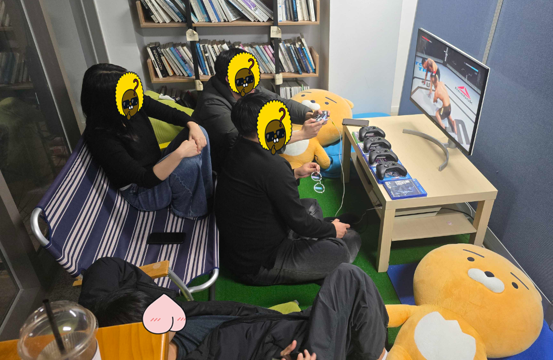 강남에서 개발하는 마지막 날에는 기념으로? 퇴근하기 전에 다같이 휴게실 플레이스테이션으로 격투게임을 했다.