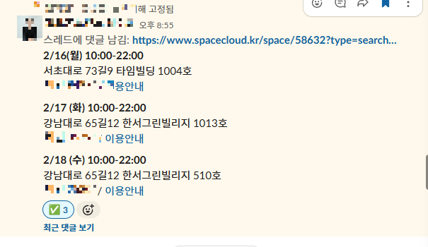 다들 항상 모이는 강남 근처로 스페이스 클라우드에서 공간을 대여했다.