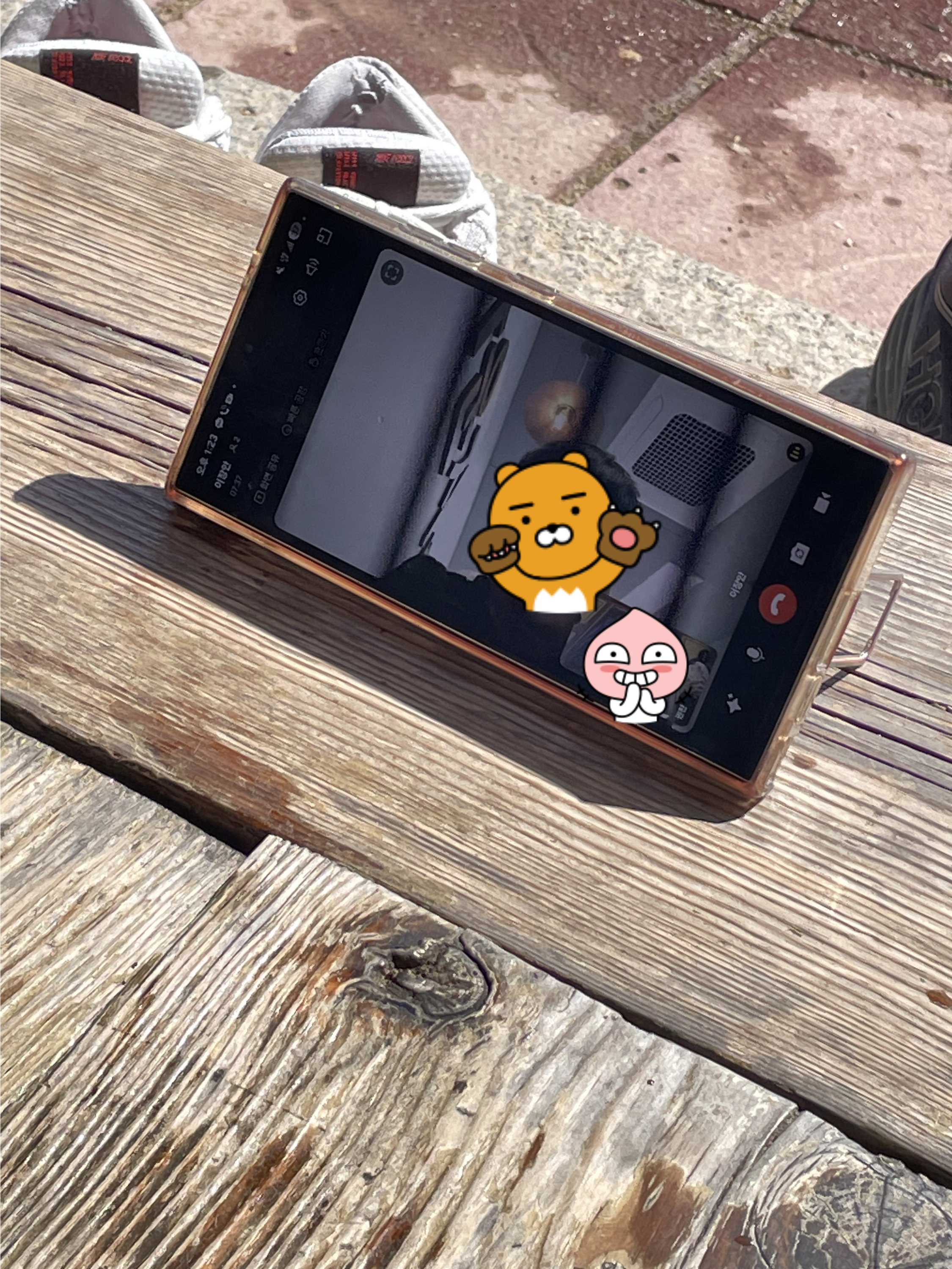 밥 먹을 때, 멀리 계셔서 같이 오지 못한 귀백분과 영상통화를 하면서 먹었다