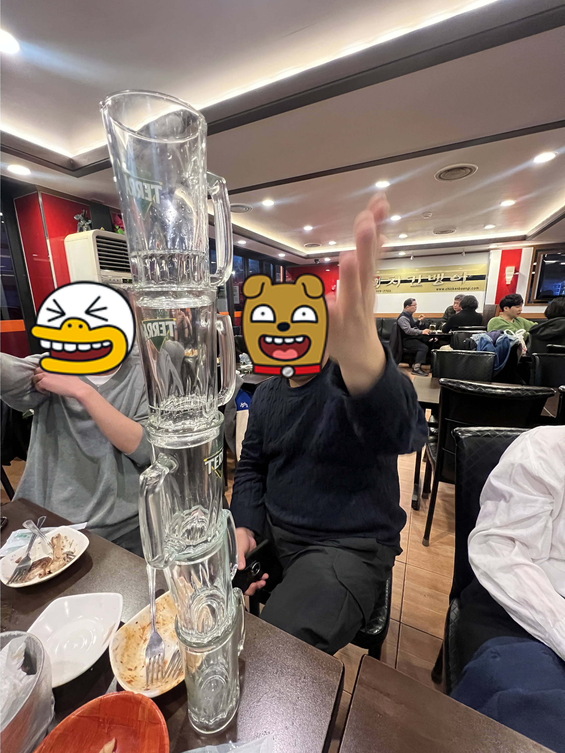 되게 위험해 보이지만 이 잔들은 안 깨졌다. 오히려 나중에 내가 소주잔을 놓쳐서 깨뜨렸다..ㅎ
