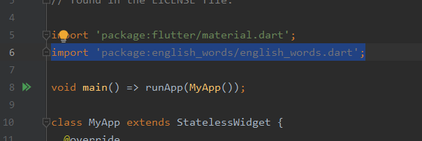 void main() => runApp(MyApp()); 에서 '=>' 는 다트 언어 문법으로, 한 줄로된 함수/메서드를 이렇게 표현합니다.