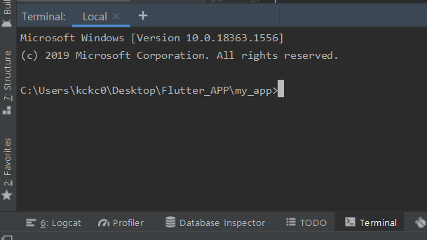 안드로이드 스튜디오 하단에 있는 터미널을 이용하겠습니다.