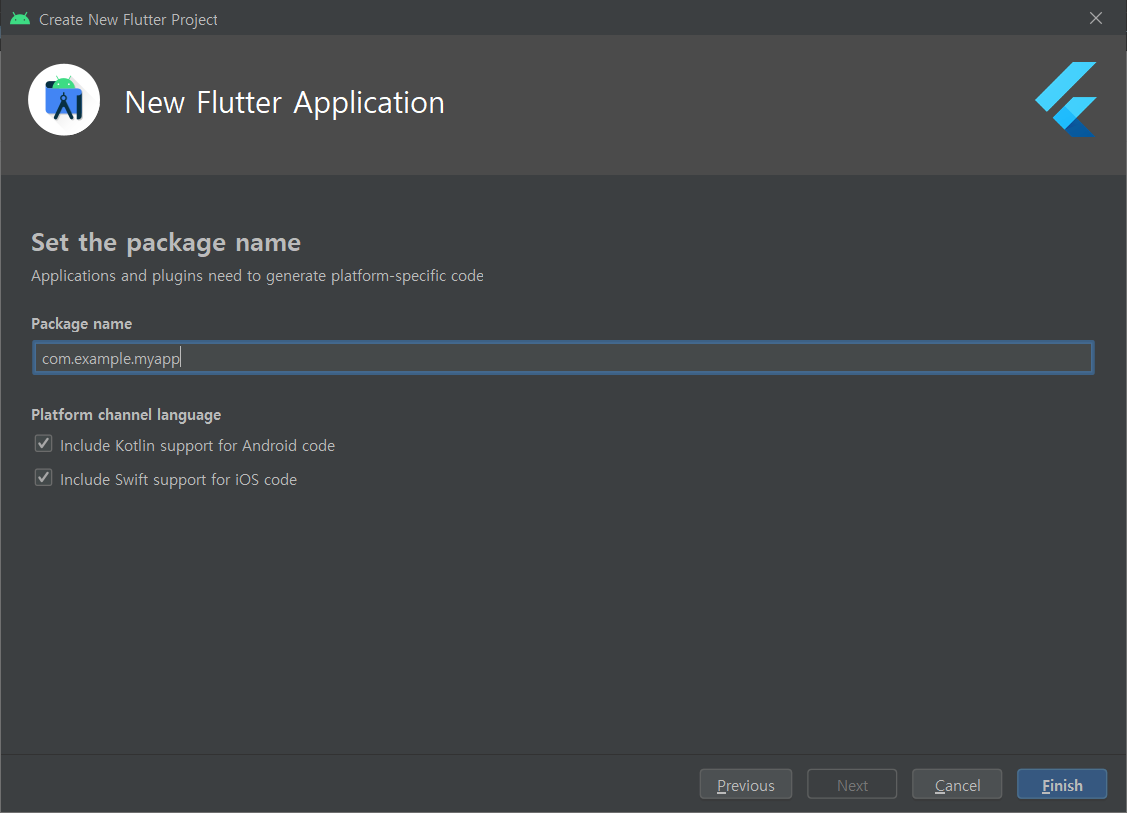 플러터에서는 도메인이 거꾸로 나옵니다. example.com => com.example 이런 식입니다.