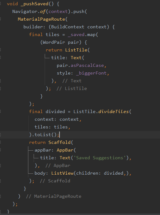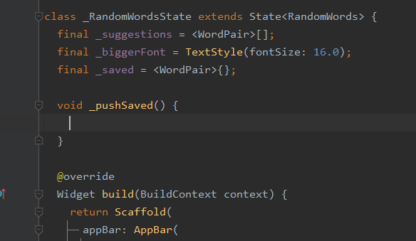 build() 메소드 위에 _pushSaved() 함수를 선언합니다.