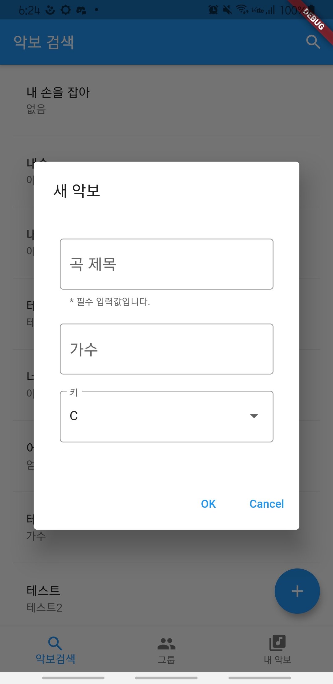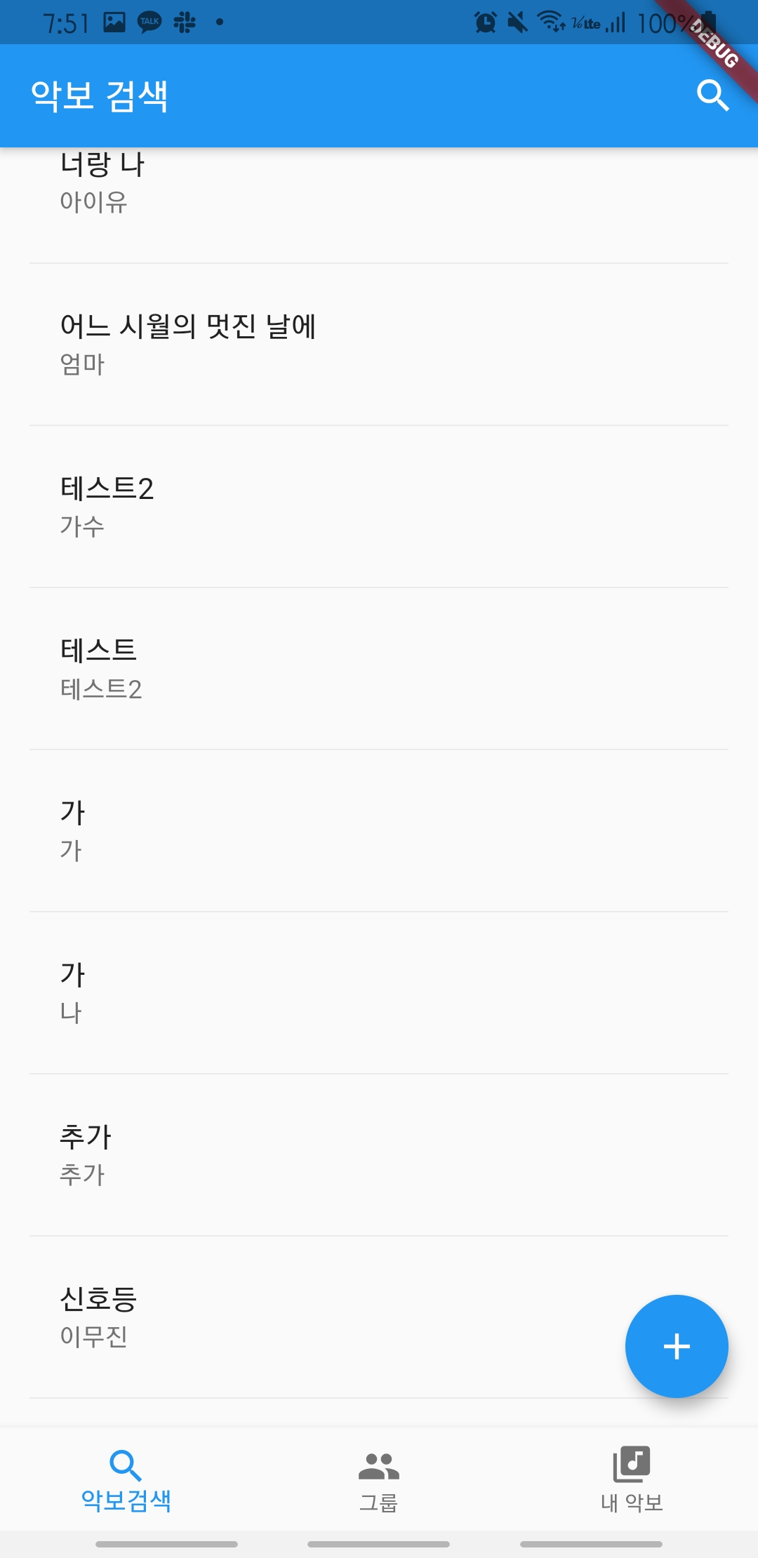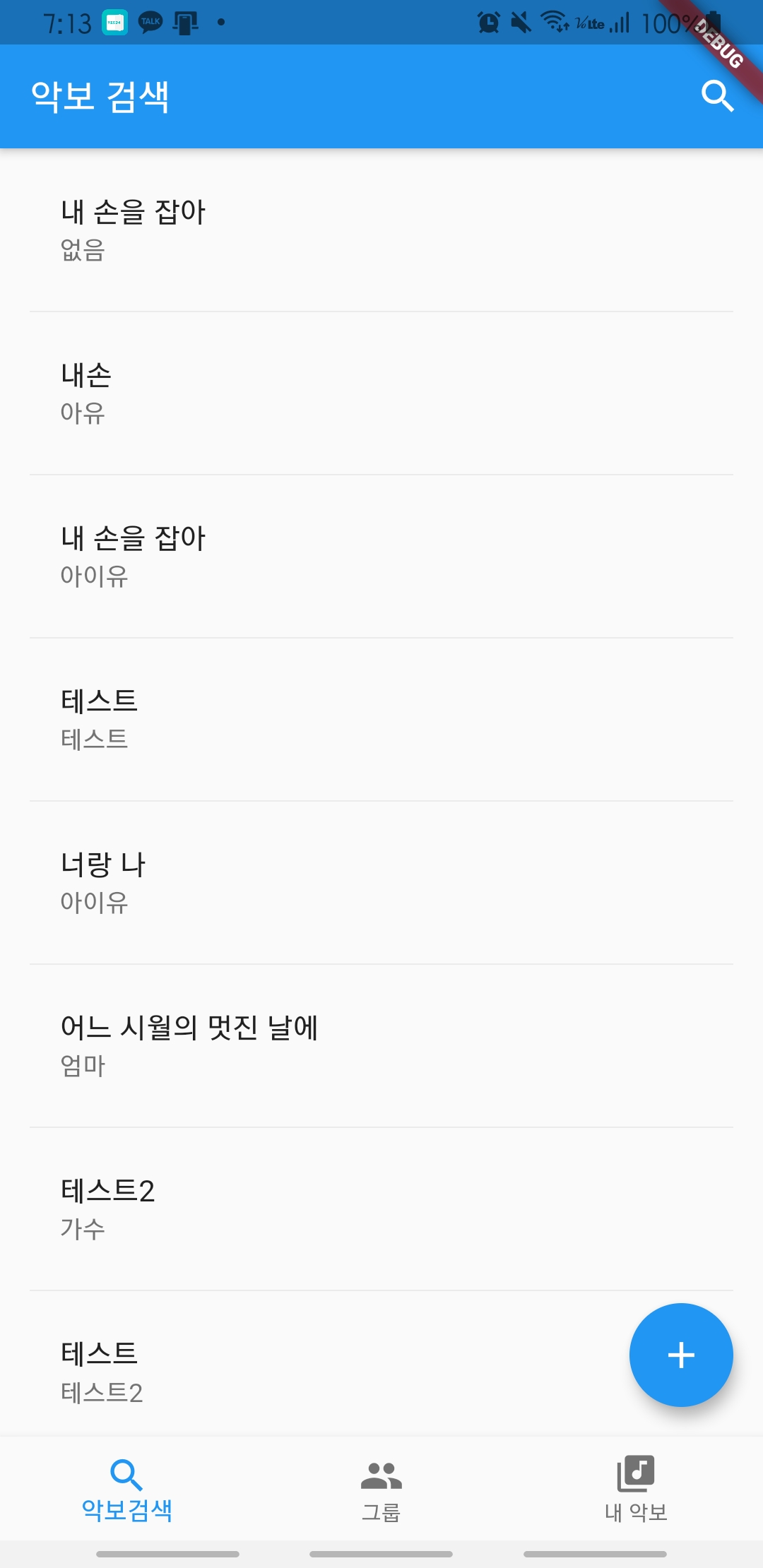 그리고 이걸 다하게 되면 드디어 '악보검색 / 그룹 / 내 악보' 3가지 기능 중