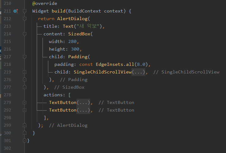이 파트를 만들면서 AlertDialog위젯, TextFeild위젯, DropButtonFormFeild 위젯에 대한 사용법을 익혔다.