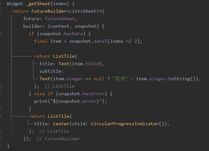 리스트타일은 Future 객체로부터 데이터를 가져와 만들어야해서 별도로 함수를 만들었다.