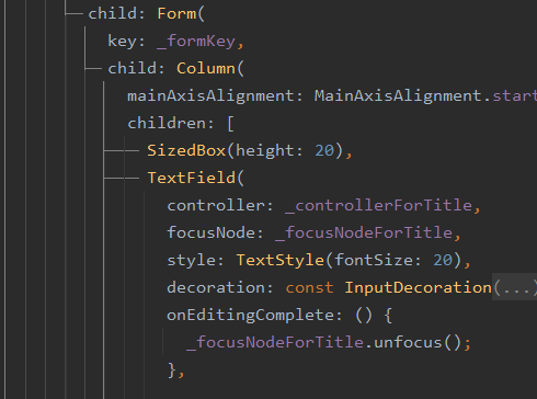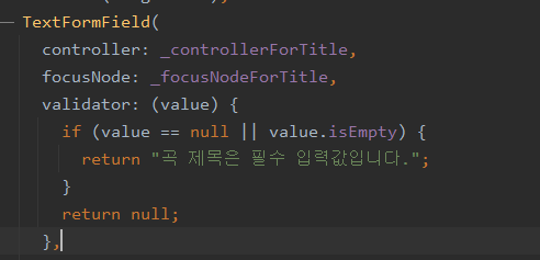 기존에 사용중이던 TextField 위젯 대신, TextFormField 위젯을 사용하겠습니다.