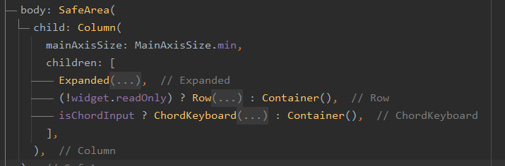 원래 Scaffold() 위젯의 body 속성으로 코드셀을 넣어주고, 커스텀키보드와 버튼UI를 bottom 속성에 넣었었다.