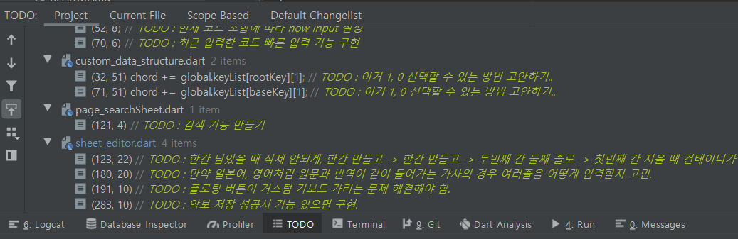 사실 전혀 생각을 못하고 있던 차에, 안드로이드 스튜디오의 TODO 기능을 발견했다.