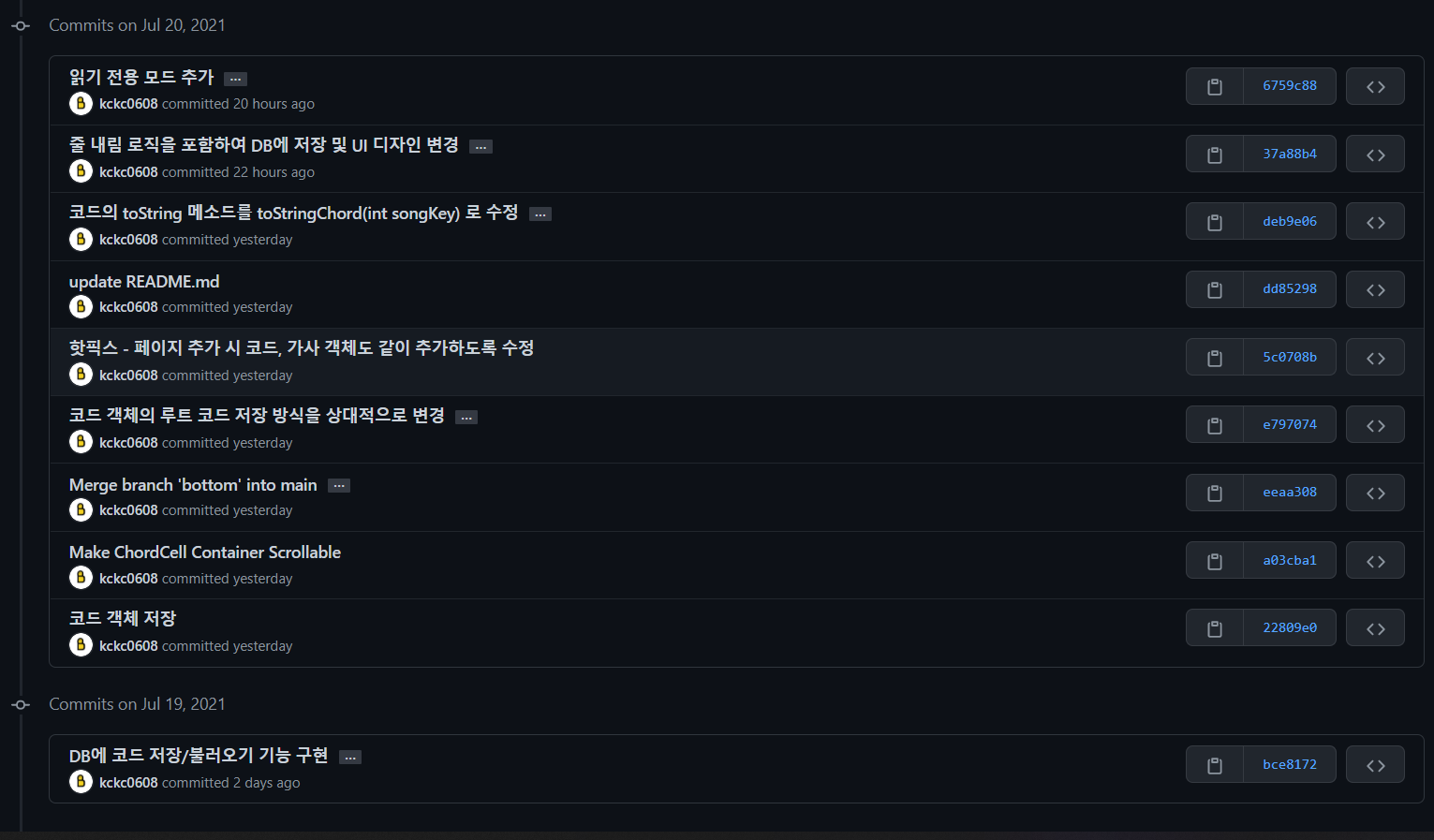 | 13. 악보 편집 기능 만들기 - 커스텀 키보드로 입력한 코드 띄우기, 깃허브 연결, DB에 테이블 추가 (0) | 2021.07.18 |